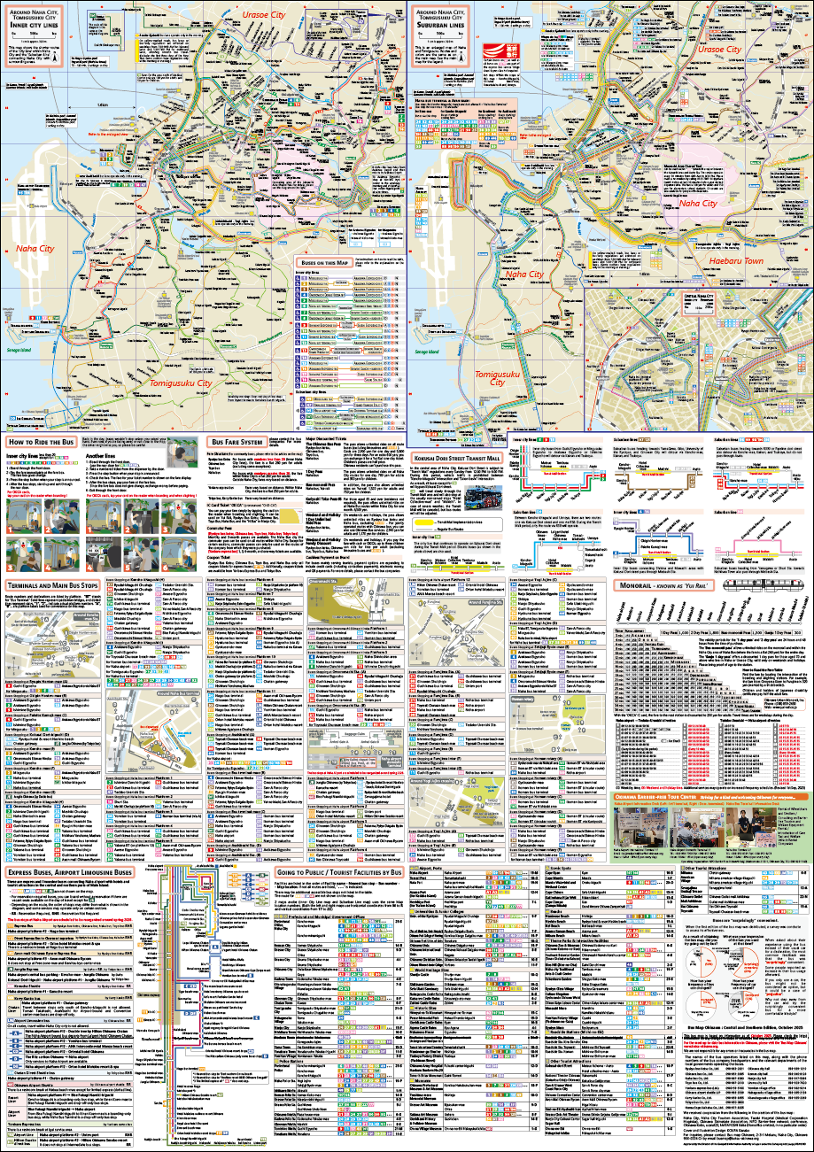 We have created “Bus Map Okinawa,” a brochure that accurately shows all bus routes and all bus stops in Okinawa Prefecture based on real geography. Even if the bus system is difficult to understand for visitors, with this map you can use it with confidence. We also encourage foreign residents of Okinawa to take advantage of the bus for your everyday outings! |